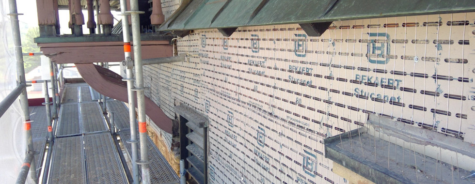 Zuerst werden die beschädigten Putzschichten sorgsam abgenommen. Anschließend bessern wir Fehlstellen und Anschlüsse aus und tragen mehrere neue Putzschichten aus kalkbasierten Baustoffen auf. Am Glockenturm wurde bereits mit den Arbeiten begonnen und wir freuen uns auf die nächsten Wochen in Winnenden.