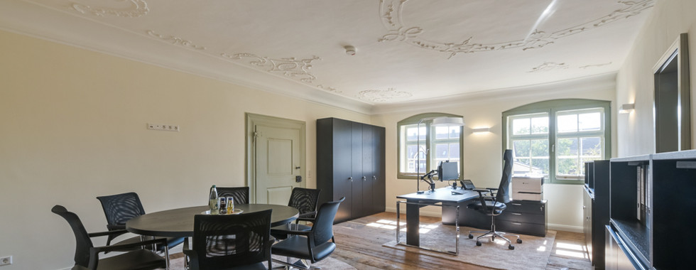 So zeigt sich der restaurierte Dachstuhl in voller Pracht, die historischen Fenster und Türen haben ihren angestammten Platz wieder eingenommen und auch im Bürgermeisterzimmer ist der restaurierte Boden wieder an Ort und Stelle. Weiter stellen die sorgsam restaurierten Stuckdecken ein besonderes Highlight dar. Neben den historischen Elementen wurden auch einige moderne Ergänzungen vorgenommen; so ermöglicht ein Aufzug die barrierefreie Erschließung aller Etagen.
